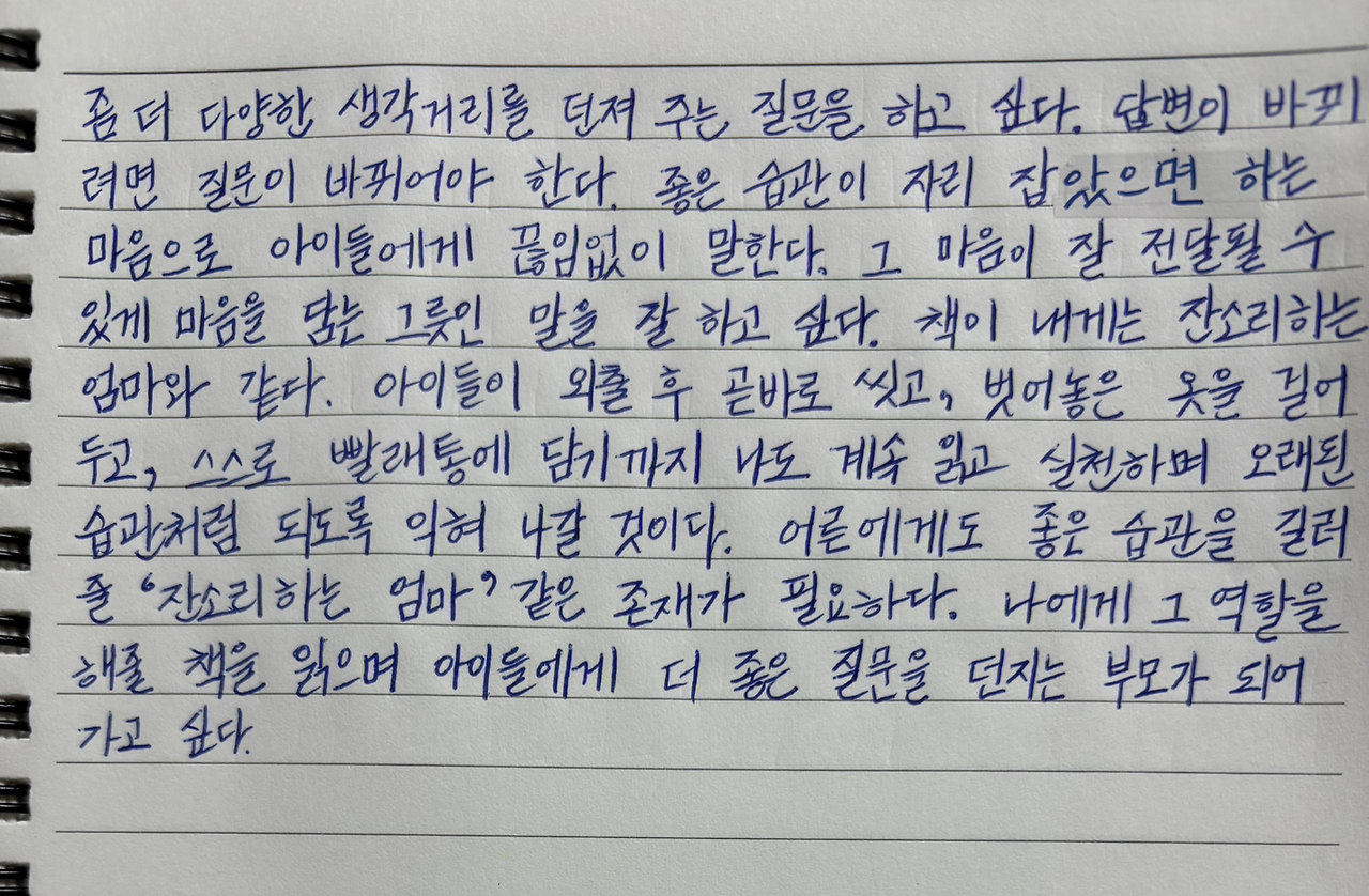 나에게 그 역할을 해줄 책을 읽으며 아이들에게 더 좋은 질문을 던지는 부모가 되어 가고 싶다.