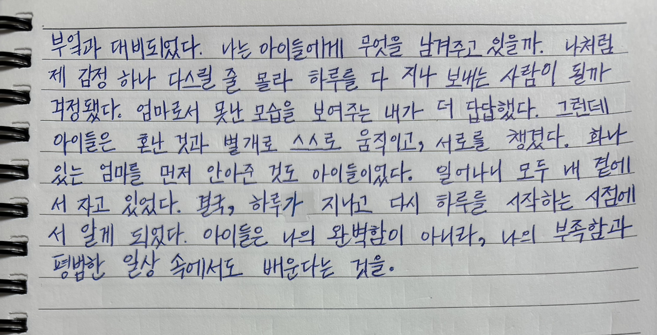 엄마로서 못난 모습을 보여주는 내가 더 답답했다.