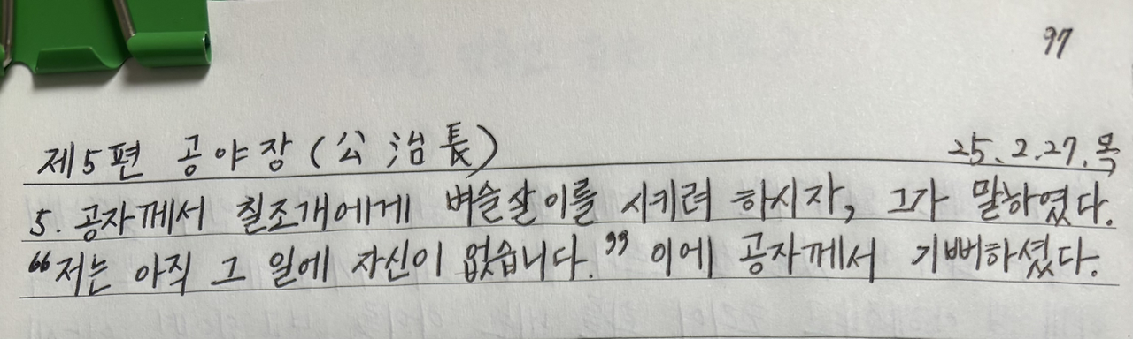 공자께서 칠조개에게 벼슬살이를 시키려 하시자, 그가 말하였다. "저는 아직 그 일에 자신이 없습니다." 이에 공자께서 기뻐하셨다.