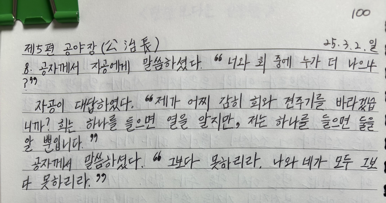 자공이 대답하였다. "제가 어찌 감히 회와 견주기를 바라겠습니까? 회는 하나를 들으면 열을 알지만, 저는 하나를 들으면 둘을 알 뿐입니다."