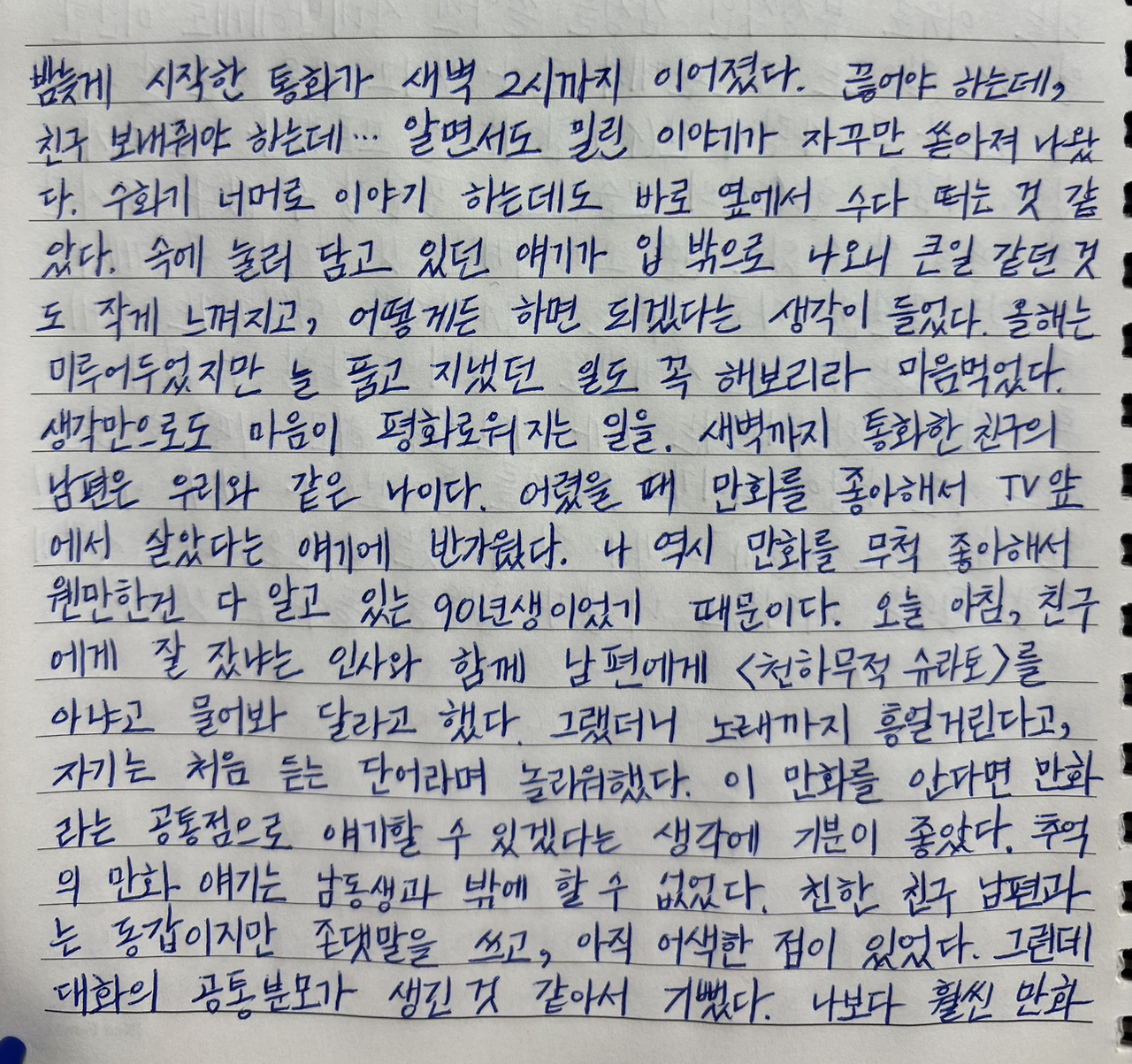 새벽까지 통화한 친구의 남편은 우리와 같은 나이다.