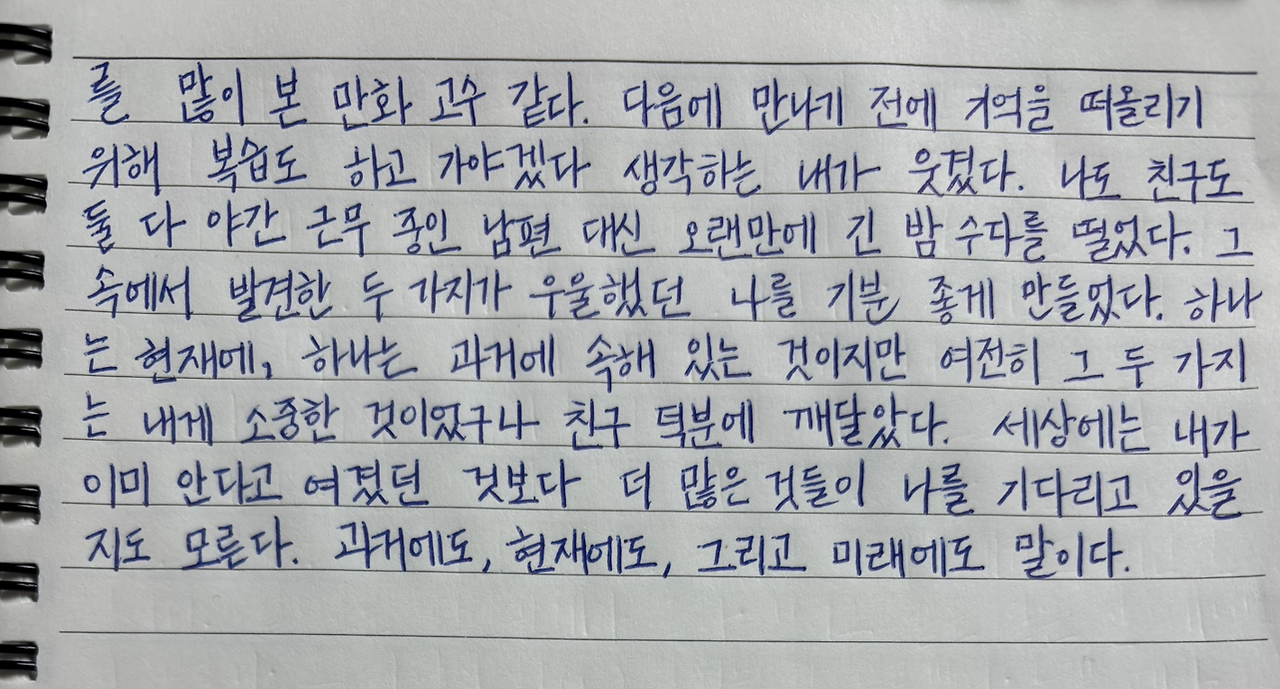 다음에 만나기 전에 기억을 떠올리기 위해 복습도 하고 가야겠다 생각하는 내가 웃겼다.