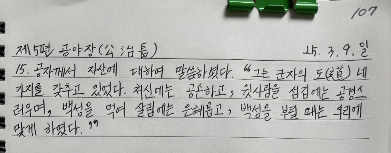 공자께서 자산에 대하여 말씀하셨다. "그는 군자의 도(道) 네 가지를 갖추고 있었다. 처신에는 공손하고, 윗사람을 섬김에는 공경스러우며, 백성을 먹여 살림에는 은혜롭고, 백성을 부릴 때는 의리에 맞게 하였다."