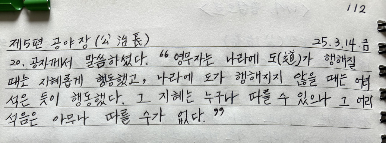 도가 행해질 때는 지혜롭게 나아갔지만 도가 행해지지 않을 때는 스스로를 낮추며 어리석게 나아갔다.