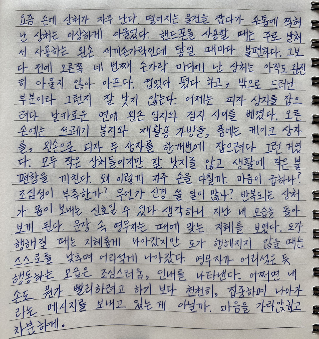 어쩌면 내 손도 뭔가 빨리하려고 하기보다 천천히, 집중하며 나아가라는 메시지를 보내고 있는 게 아닐까.