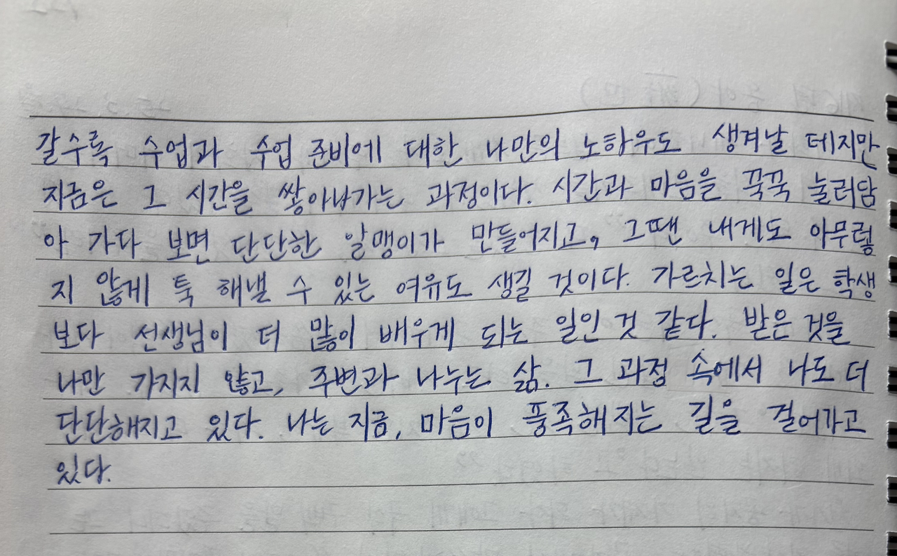 시간이 갈수록 수업과 수업 준비에 대한 나만의 노하우도 생겨날 테지만 지금은 그 시간을 쌓아나가는 과정이다.