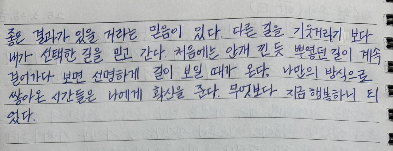 나에 대해 잘 알고, 스스로 묻고 답한 끝에 선택한 일이기에 언젠간 좋은 결과가 있을 거라는 믿음이 있다.