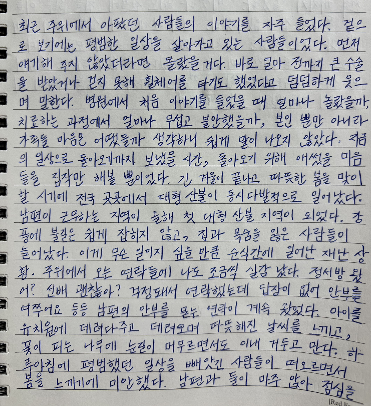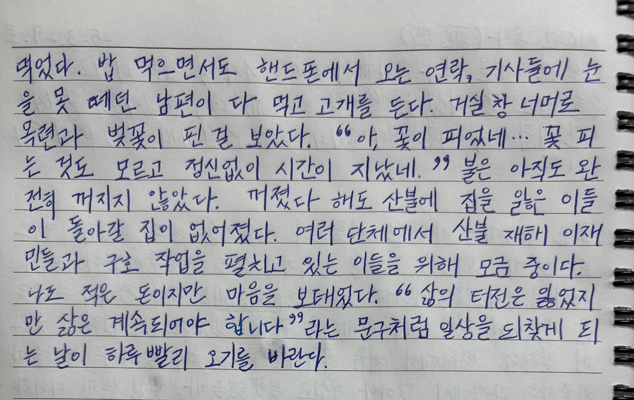 하루아침에 평범했던 일상을 빼앗긴 사람들이 떠오르면서 봄을 느끼기에 미안했다.