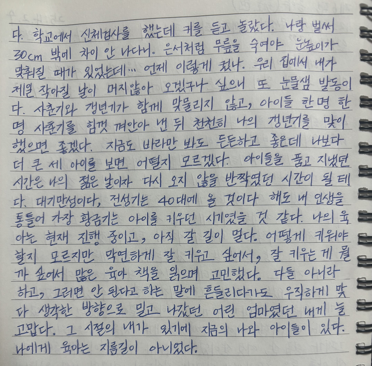 사춘기와 갱년기가 함께 맞물리지 않고, 아이들 한 명 한 명 사춘기를 힘껏 껴안아 낸 뒤 천천히 나의 갱년기를 맞이했으면 좋겠다.