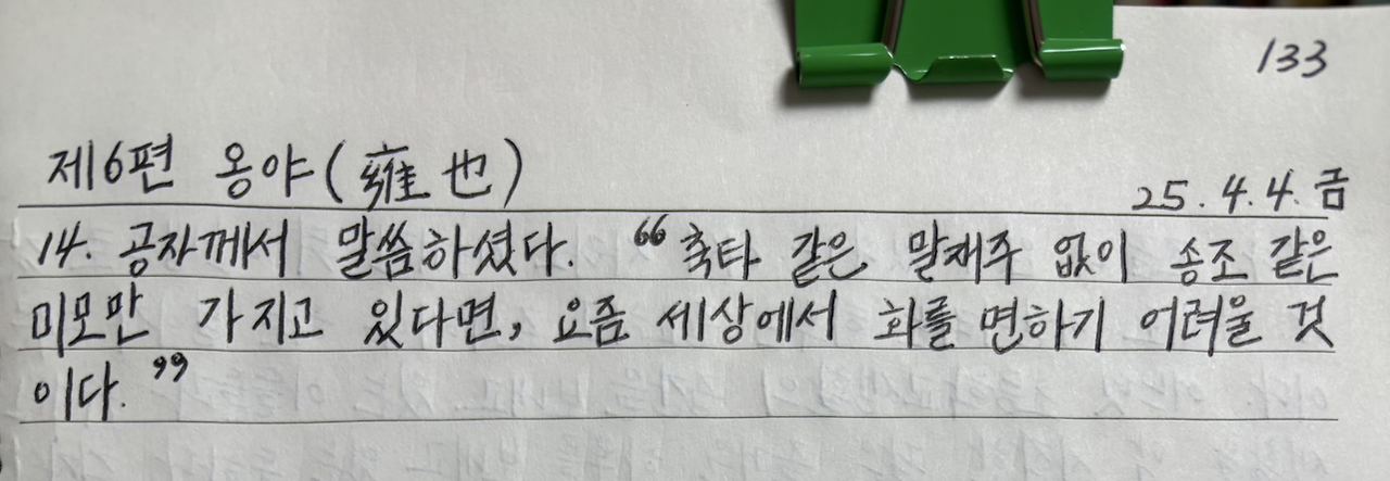-《논어》, 공자_제6편 옹야(雍也) 14.