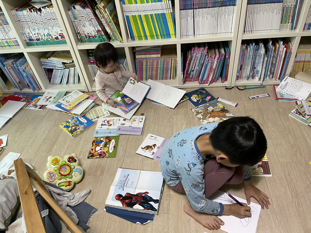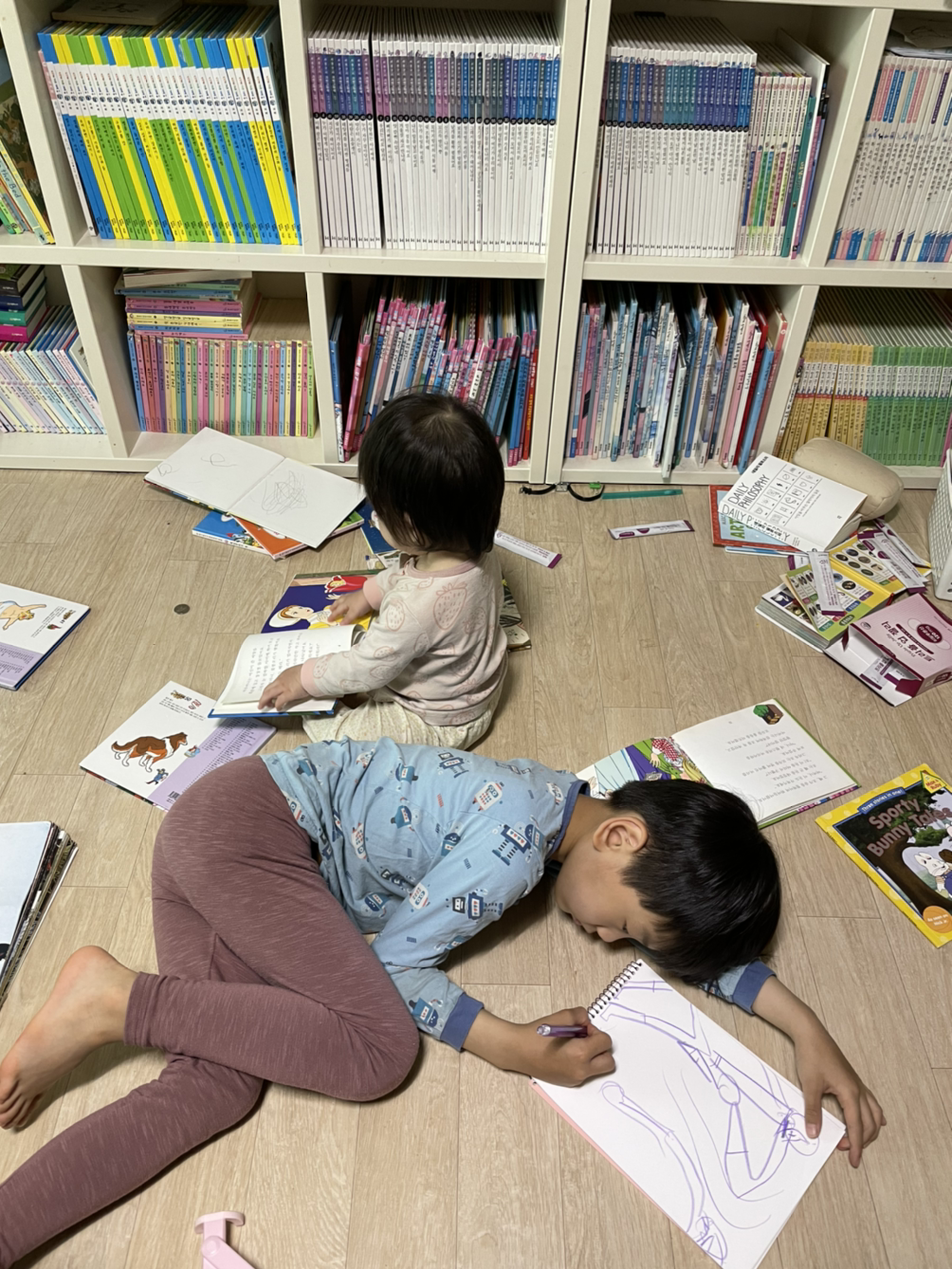그러곤 옷 갈아입고 책 보고 그림 그리며 놀았다.