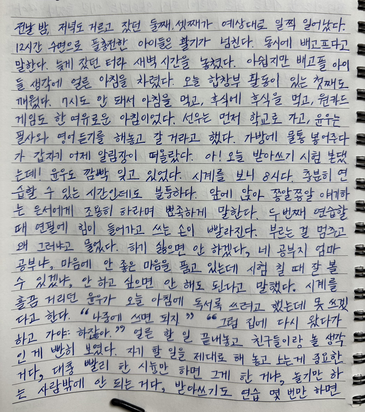 선우는 먼저 학교로 가고, 윤우는 필사와 영어 듣기를 해놓고 갈 거라고 했다.