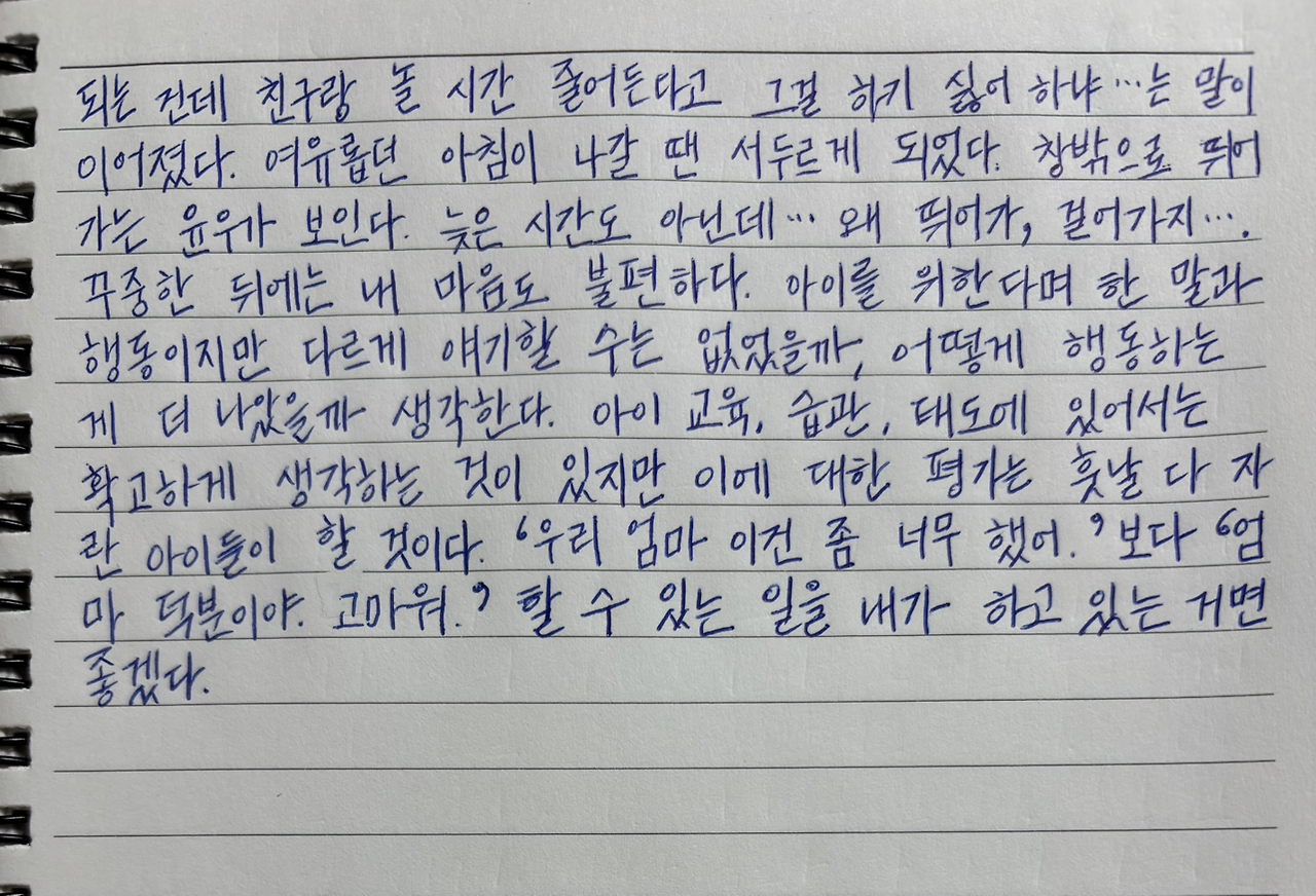 아이를 위한다며 한 말과 행동이지만 다르게 얘기할 수는 없었을까, 어떻게 행동하는 게 더 나았을까 생각한다.