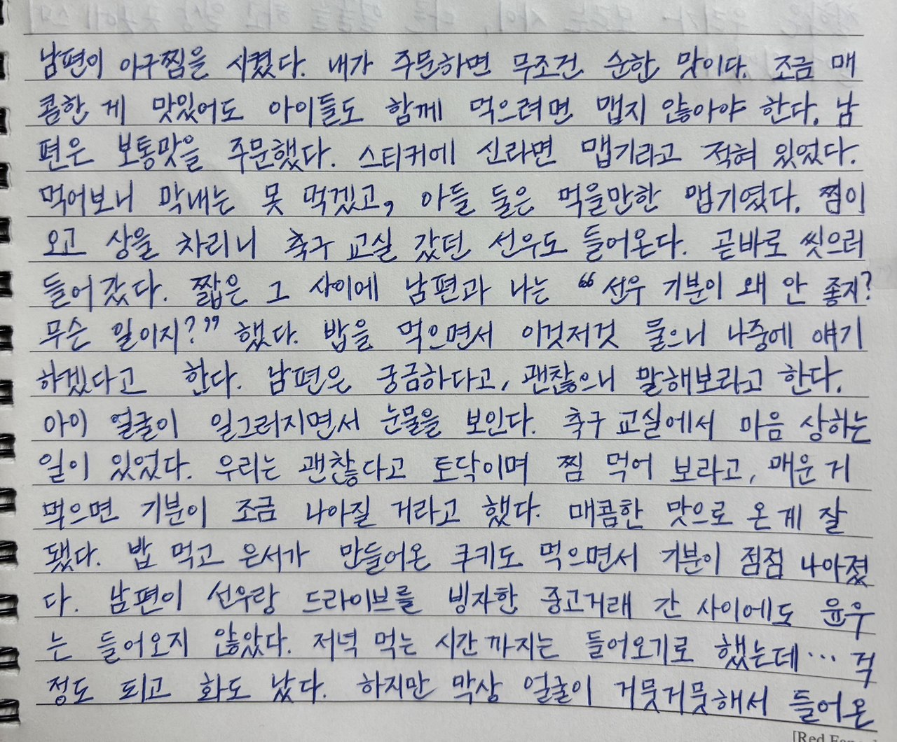 우리는 괜찮다고 토닥이며 찜 먹어 보라고, 매운 거 먹으면 기분이 조금 나아질 거라고 했다.