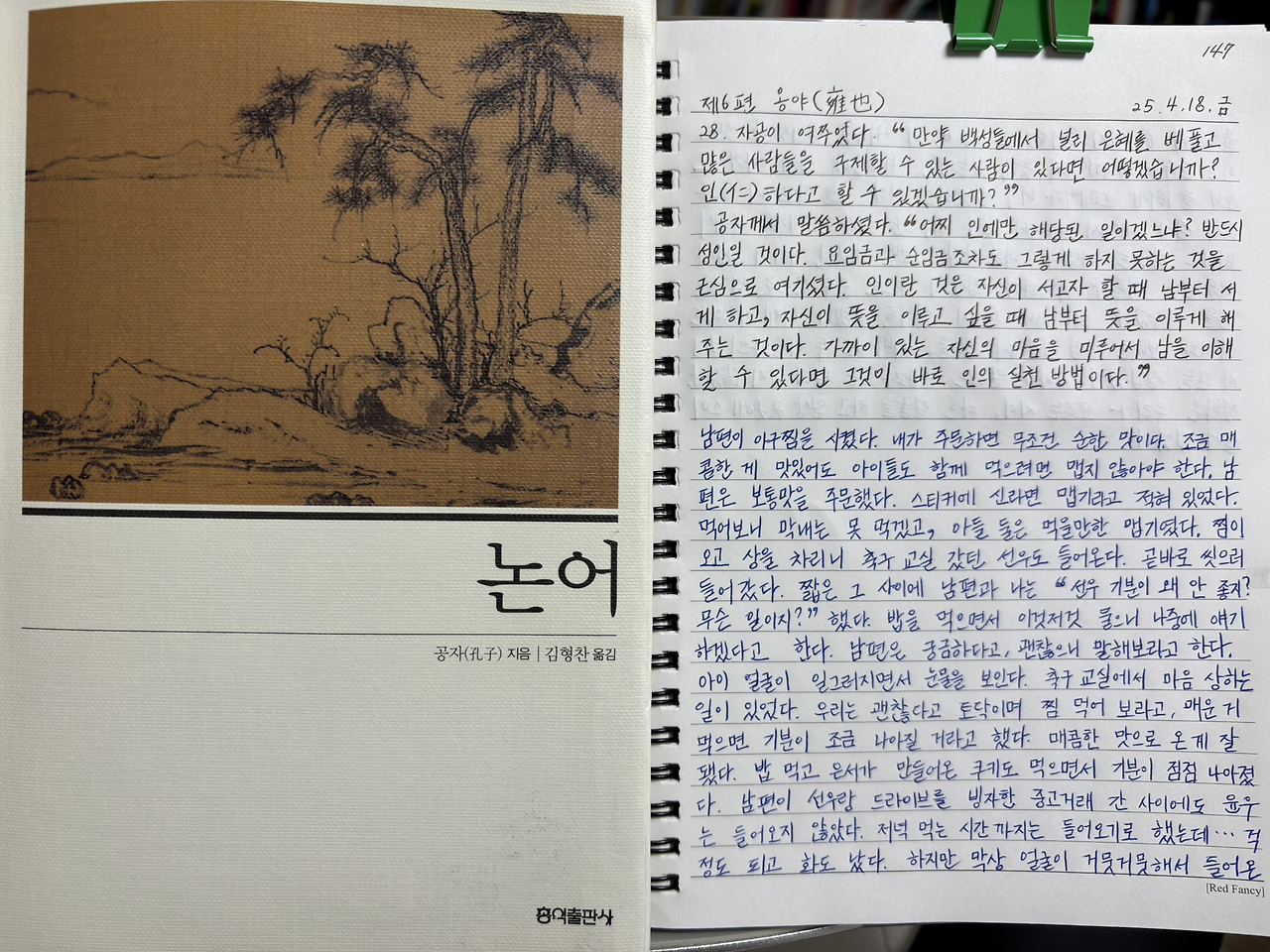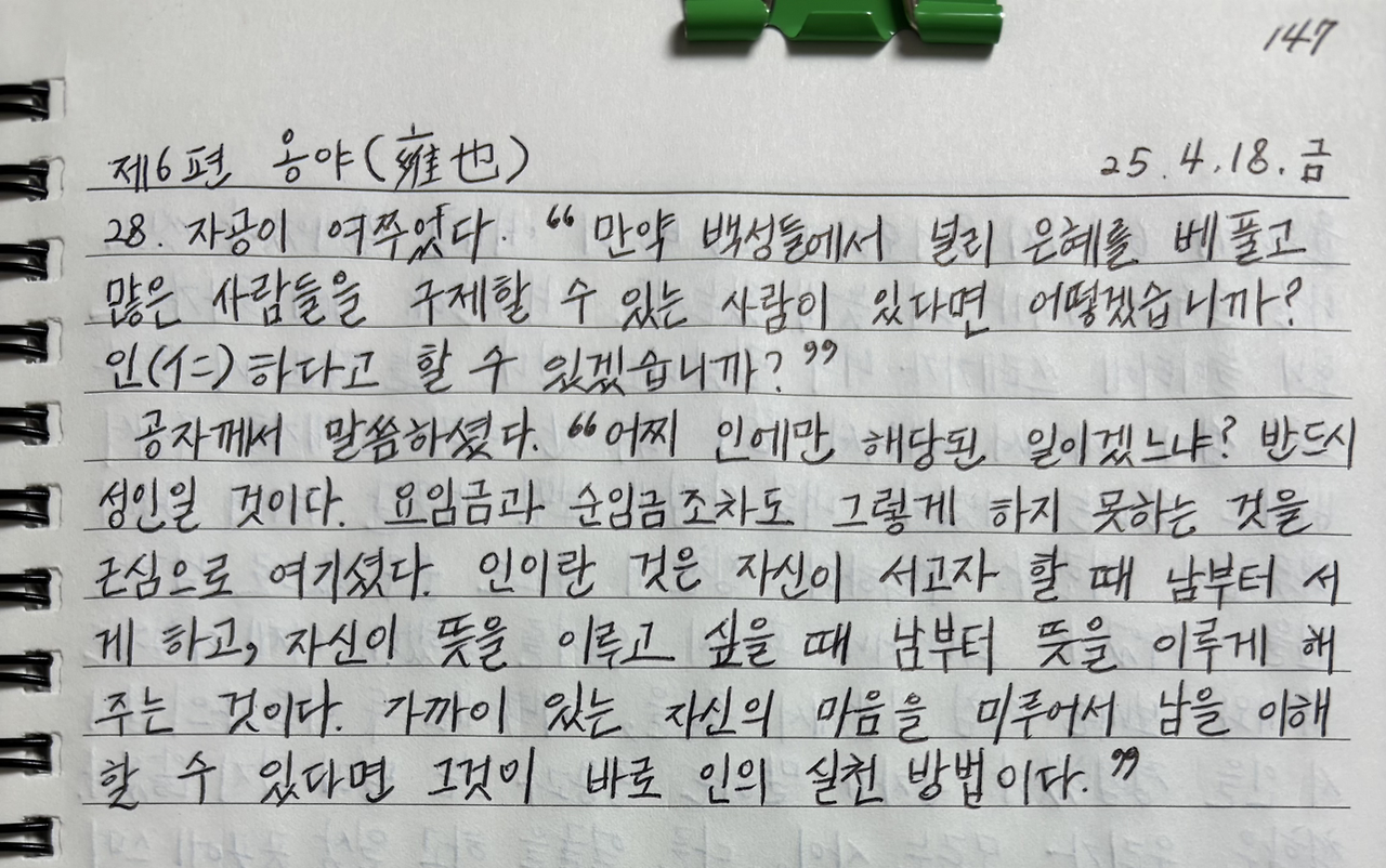 어제 아침에는 막내와 보내는 아침 시간에서 중용을, 저녁에는 두 아들과의 일에서 인을 경험했다.