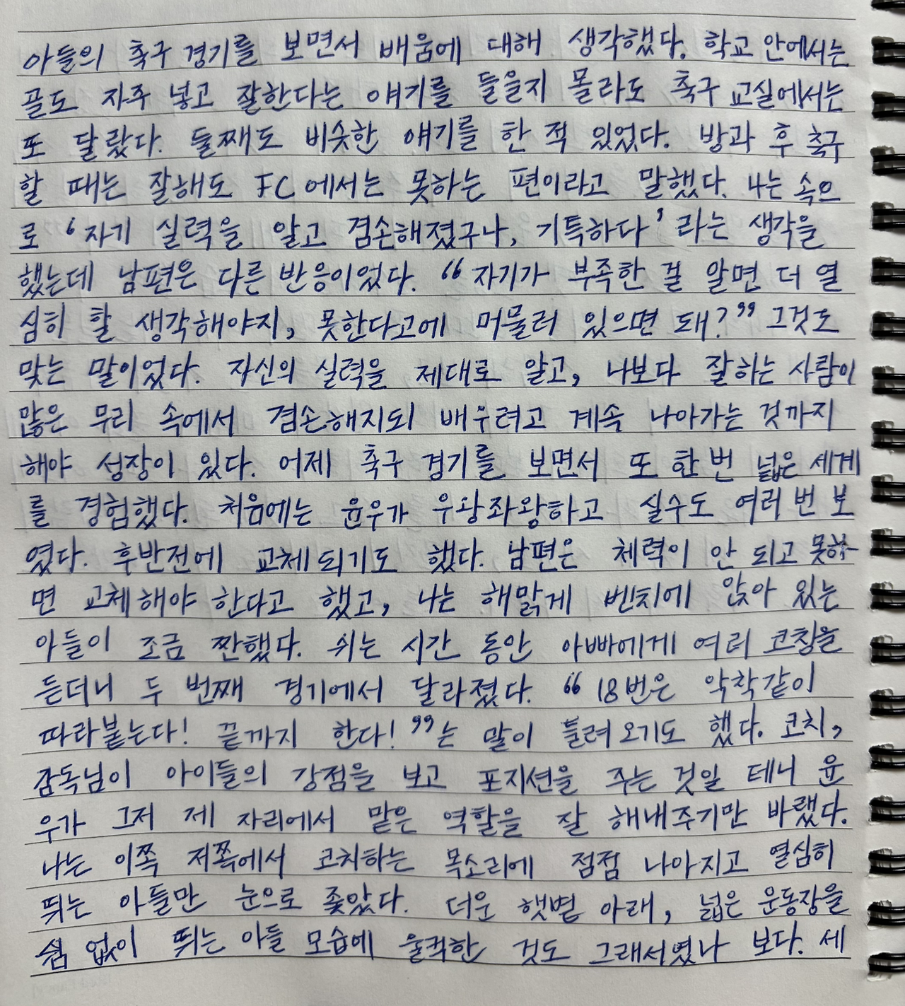 아들의 축구를 보면서 내가 느낀 작지만 깊은 배움이었다.