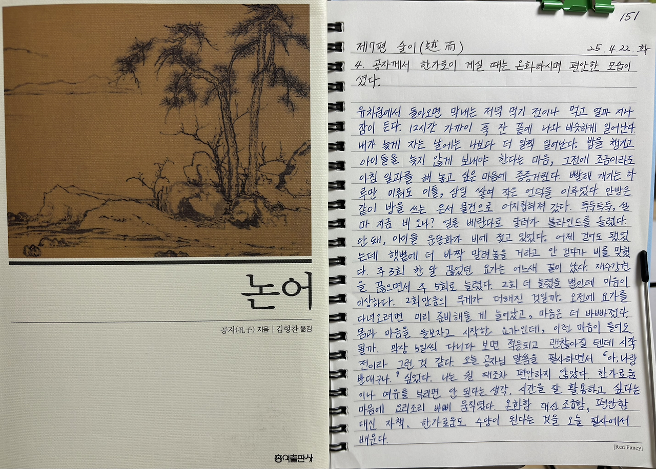 한가로움도 수양이 된다는 것을 오늘 필사에서 배운다.