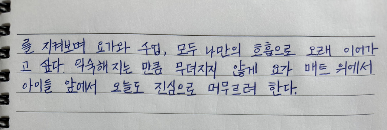 조금씩 나아지는 나를 지켜보며 요가와 수업, 모두 나만의 호흡으로 오래 이어가고 싶다.