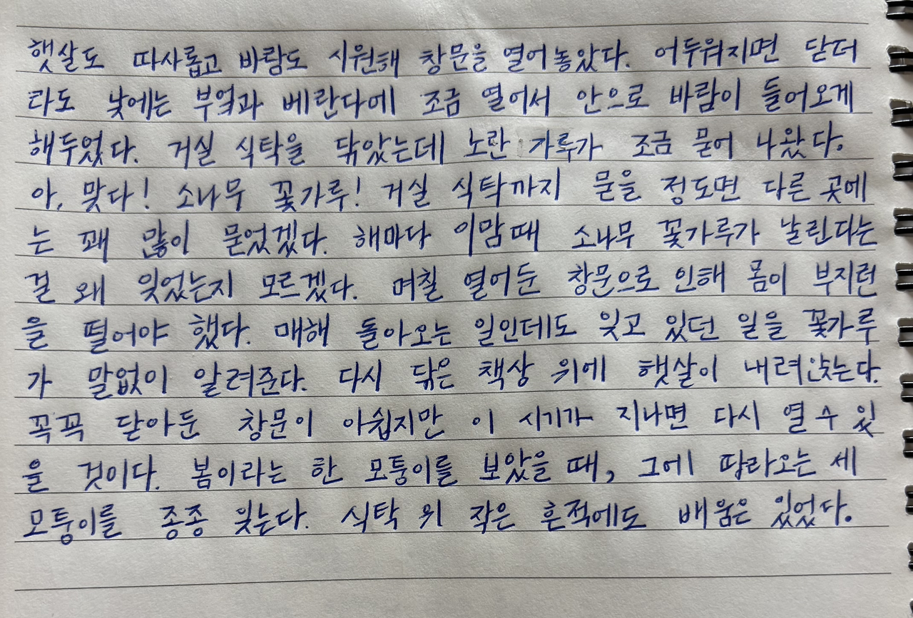 매해 돌아오는 일인데도 잊고 있던 일을 꽃가루가 말없이 알려준다.