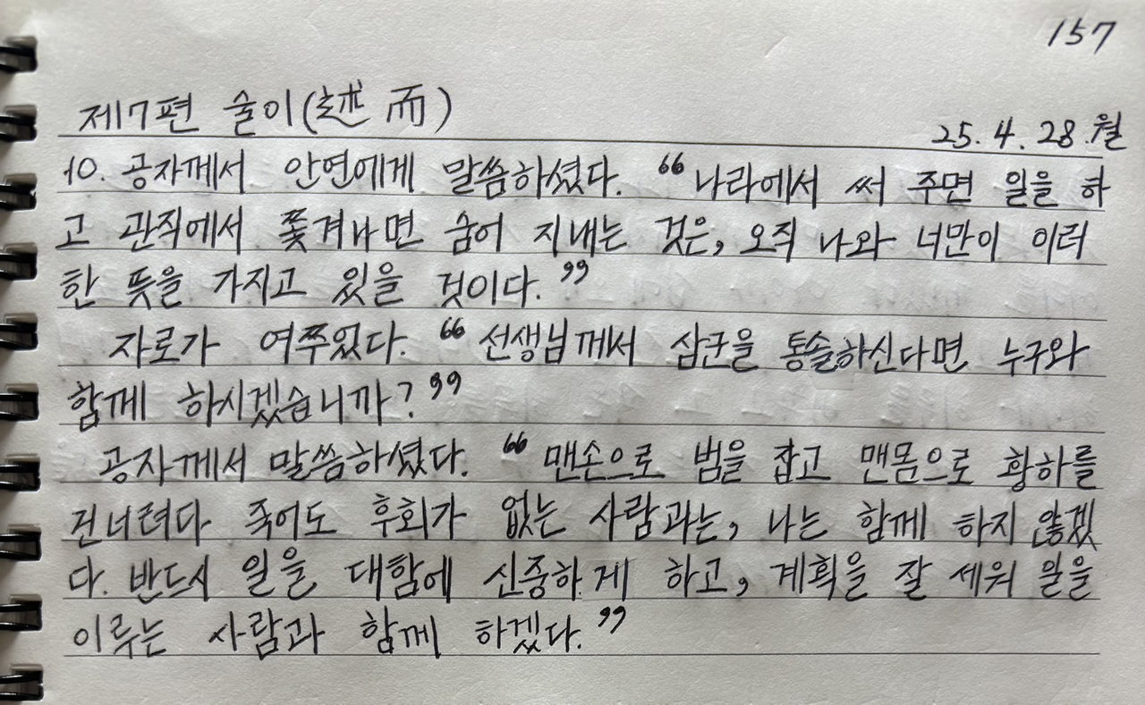 자로가 여쭈었다. “선생님께서 삼군을 통솔하신다면 누구와 함께 하시겠습니까?”