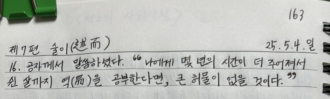 공자께서 말씀하셨다. “나에게 몇 년의 시간이 더 주어져서 쉰 살까지 역(易)을 공부한다면, 큰 허물이 없을 것이다.”