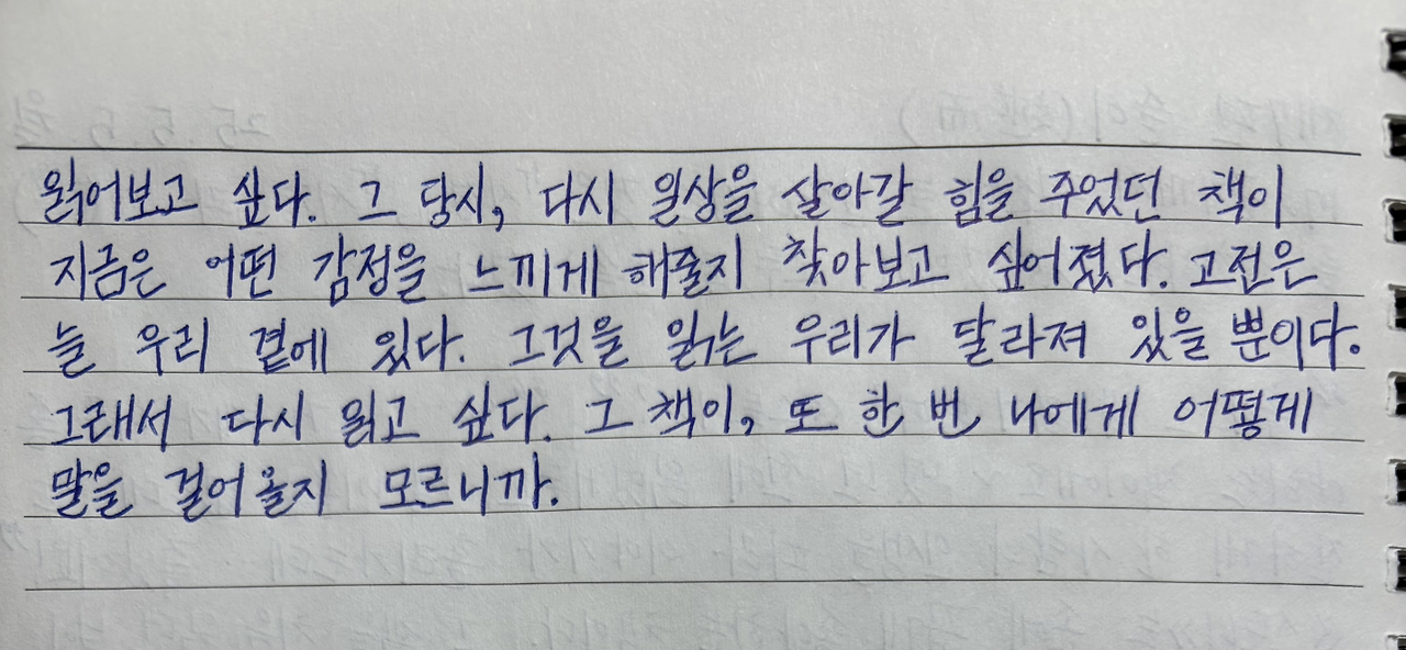 그 당시, 다시 일상을 살아갈 힘을 주었던 책이 지금은 어떤 감정을 느끼게 해 줄지 찾아보고 싶어졌다.