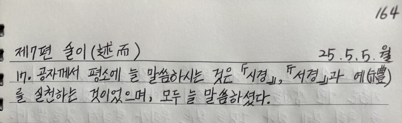 공자께서 평소에 늘 말씀하시는 것은 『시경』, 『서경』과 예(禮)를 실천하는 것이었으며, 모두 늘 말씀하셨다.