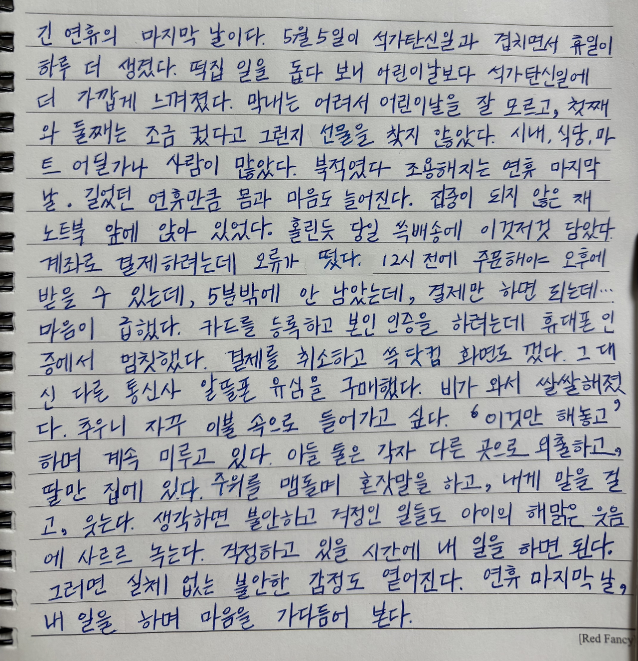 연휴 마지막 날, 내 일을 하며 마음을 가다듬어 본다.