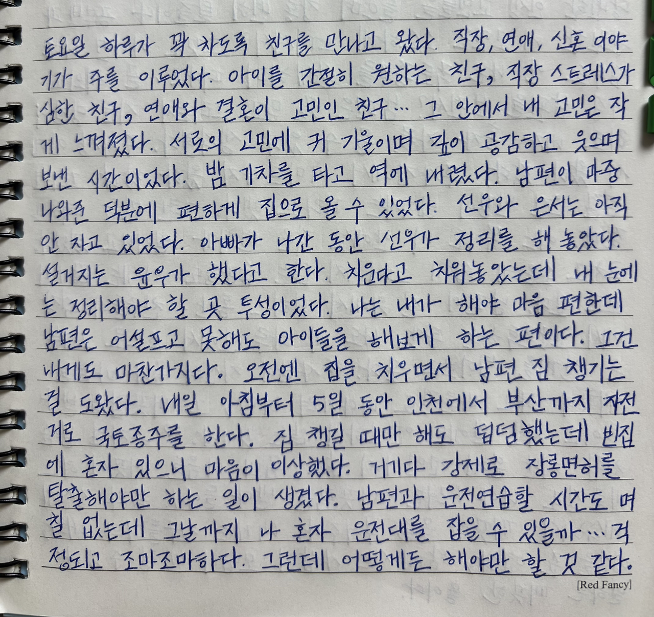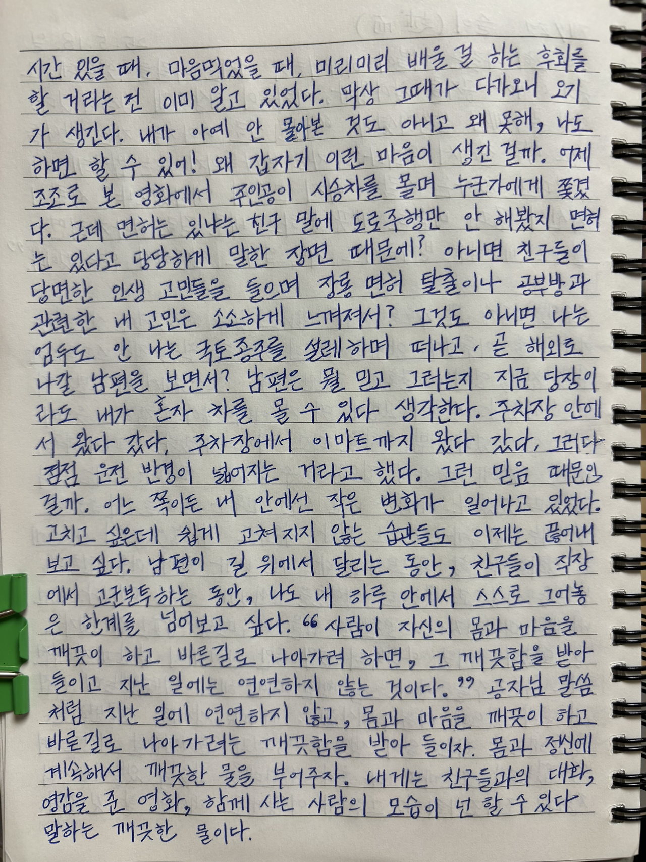 남편과 운전연습할 시간도 며칠 없는데 그날까지 나 혼자 운전대를 잡을 수 있을까… 걱정되고 조마조마하다.