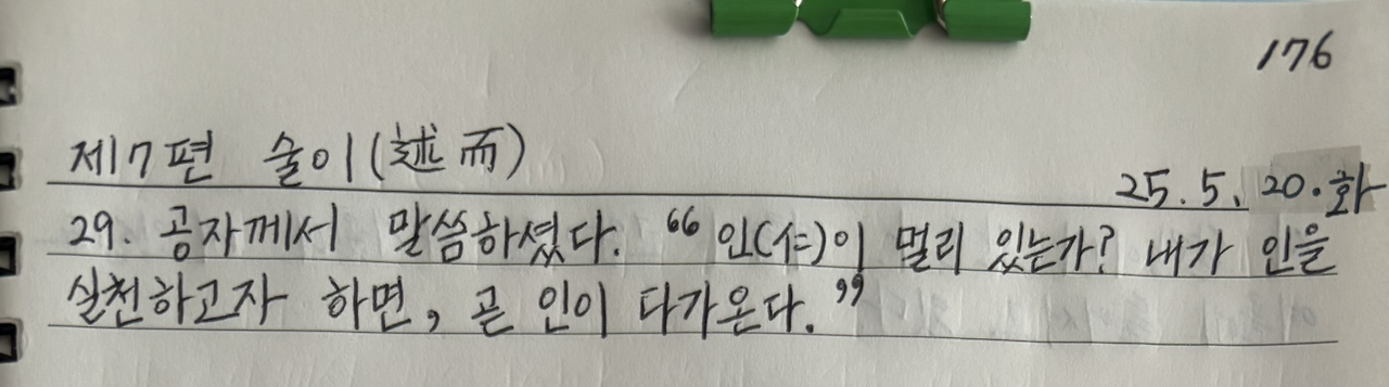 공자께서 말씀하셨다. “인(仁)이 멀리 있는가? 내가 인을 실천하고자 하면, 곧 인이 다가온다.”