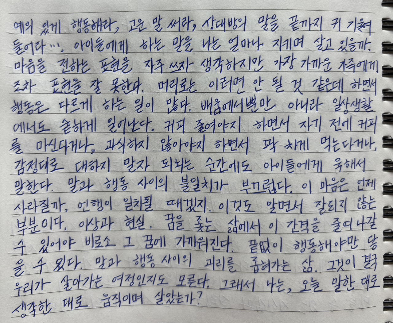 말과 행동 사이의 괴리를 좁혀가는 삶.