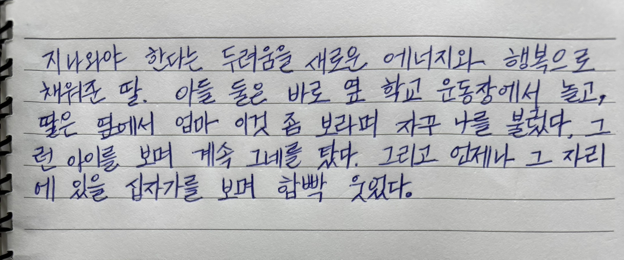 다시 그 시기를 지나와야 한다는 두려움을 새로운 에너지와 행복으로 채워준 딸.