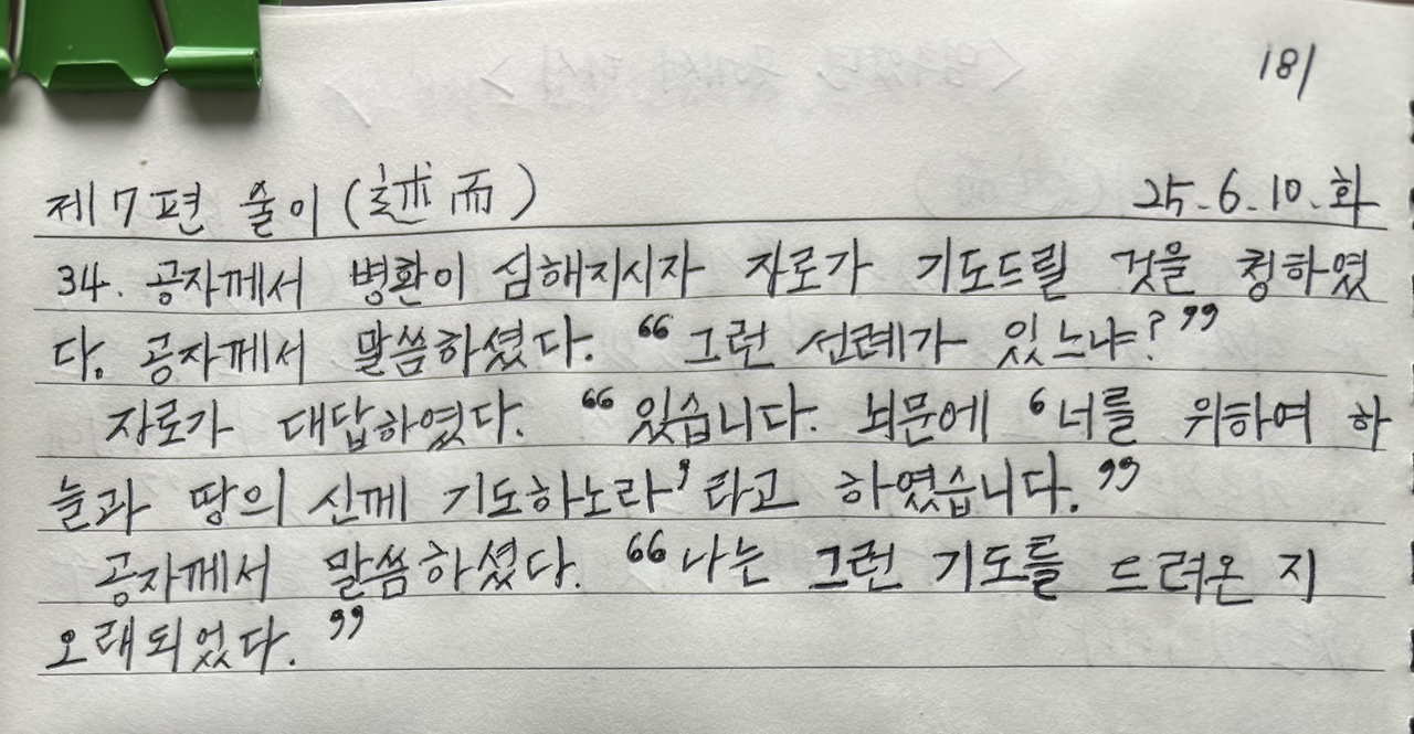 공자께서 말씀하셨다. "나는 그런 기도를 드려온 지 오래되었다."