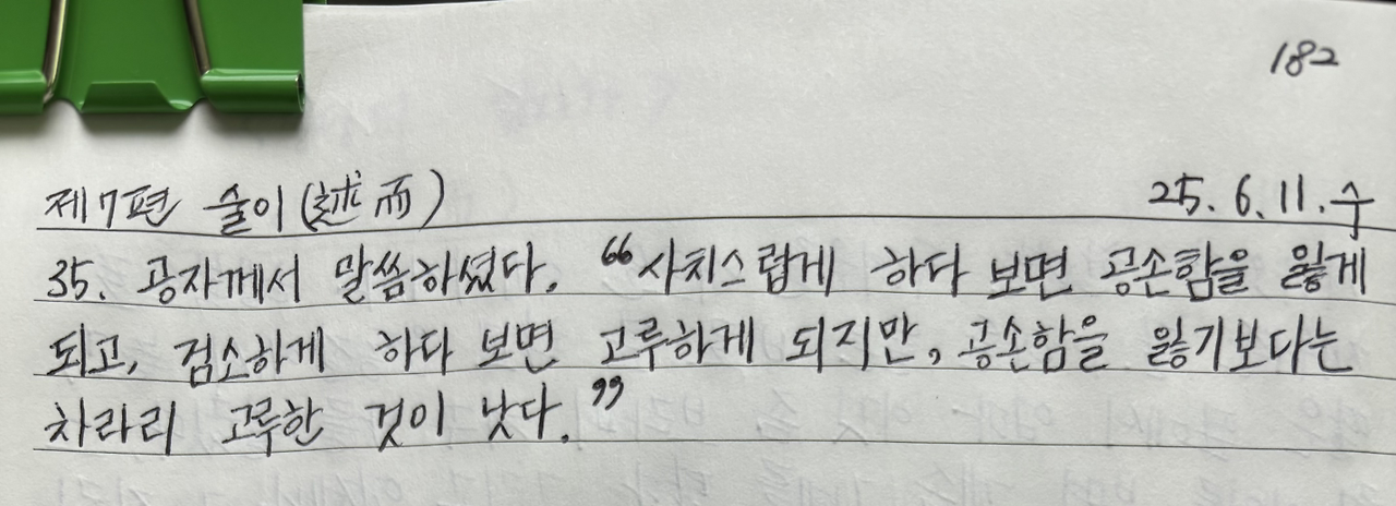 공자께서 말씀하셨다. "사치스럽게 하다 보면 공손함을 잃게 되고, 검소하게 하다 보면 고루하게 되지만, 공손함을 잃기보다는 차라리 고루한 것이 낫다."