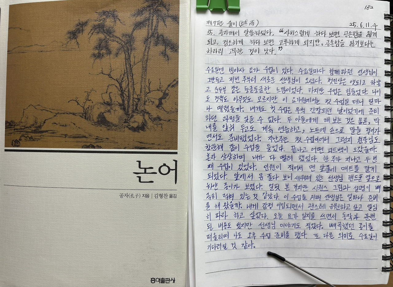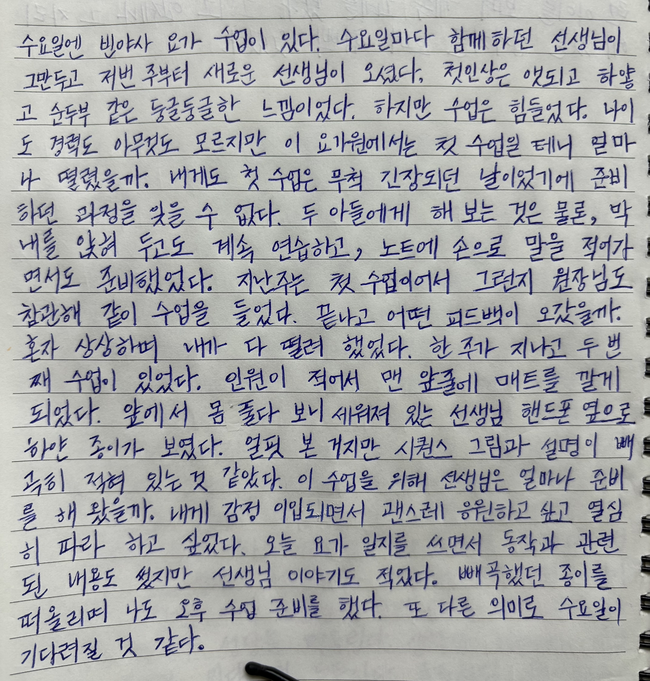 오늘 요가 일지를 쓰면서 동작과 관련된 내용도 썼지만 선생님 이야기도 적었다.
