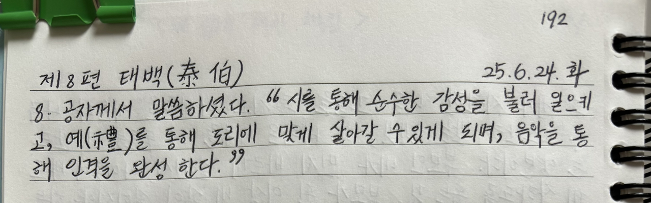 공자께서 말씀하셨다. "시를 통해 순수한 감성을 불러 일으키고, 예(禮)를 통해 도리에 맞게 살아갈 수 있게 되며, 음악을 통해 인격을 완성한다."