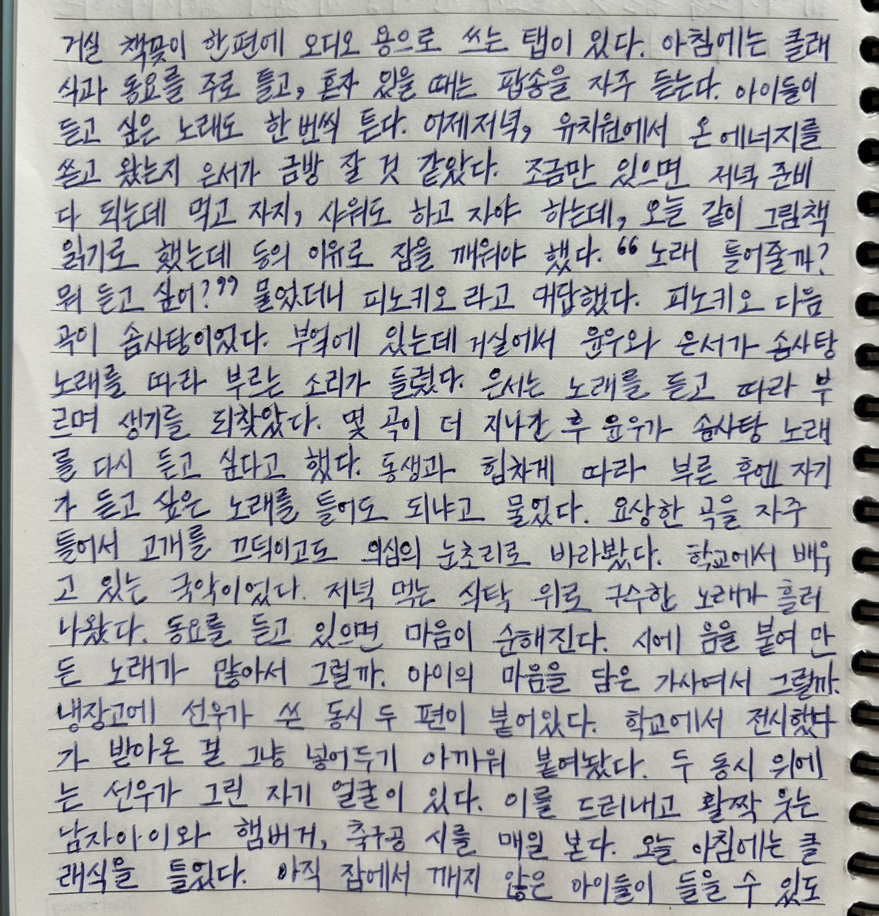 부엌에 있는데 거실에서 윤우와 은서가 솜사탕 노래를 따라 부르는 소리가 들렸다.