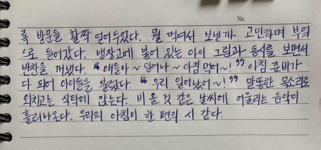 아직 잠에서 깨지 않은 아이들이 들을 수 있도록 방문을 활짝 열어두었다.