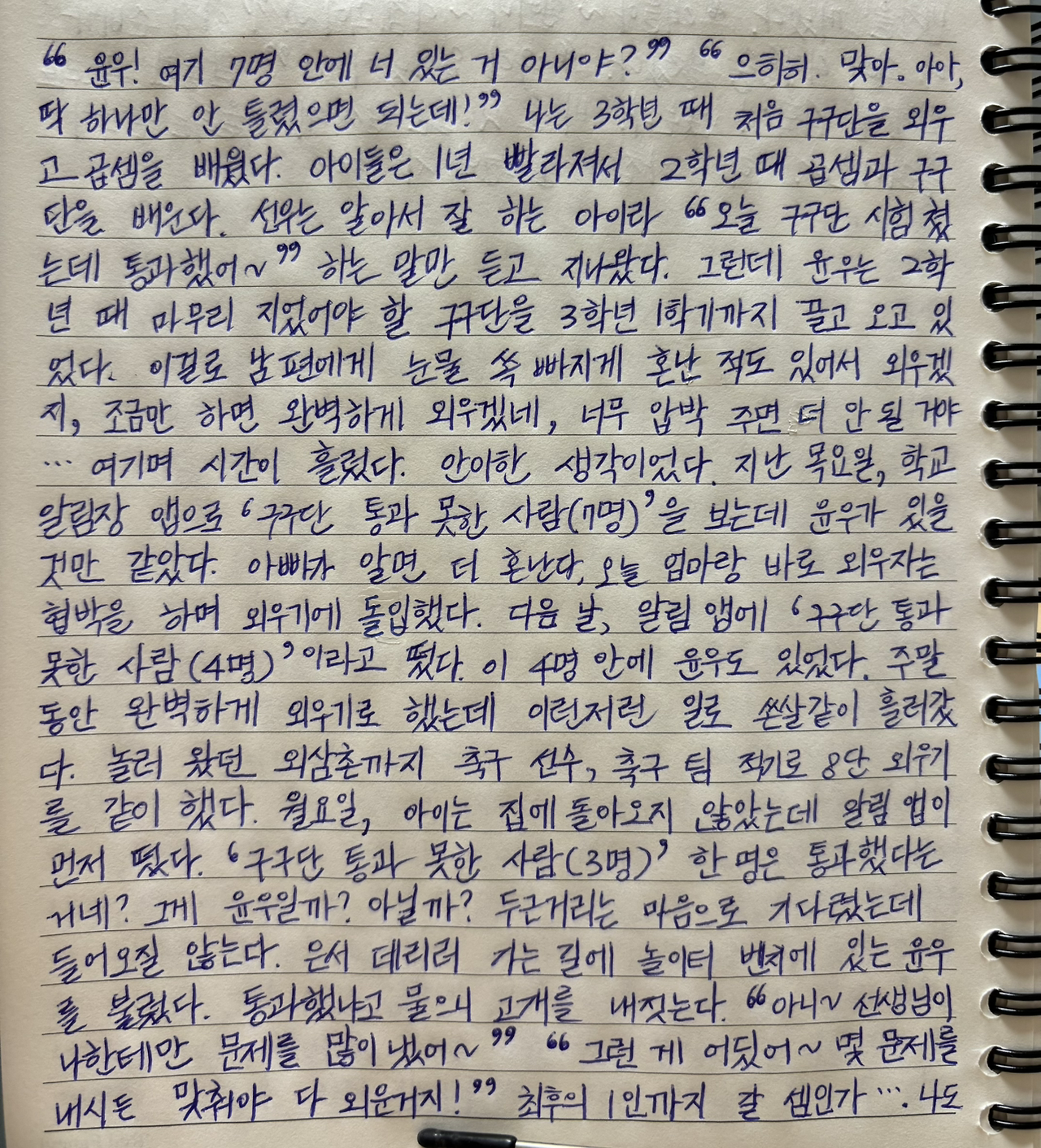 지난 목요일, 학교 알림장 앱으로 ‘구구단 통과 못한 사람(7명)’을 보는데 윤우가 있을 것만 같았다.