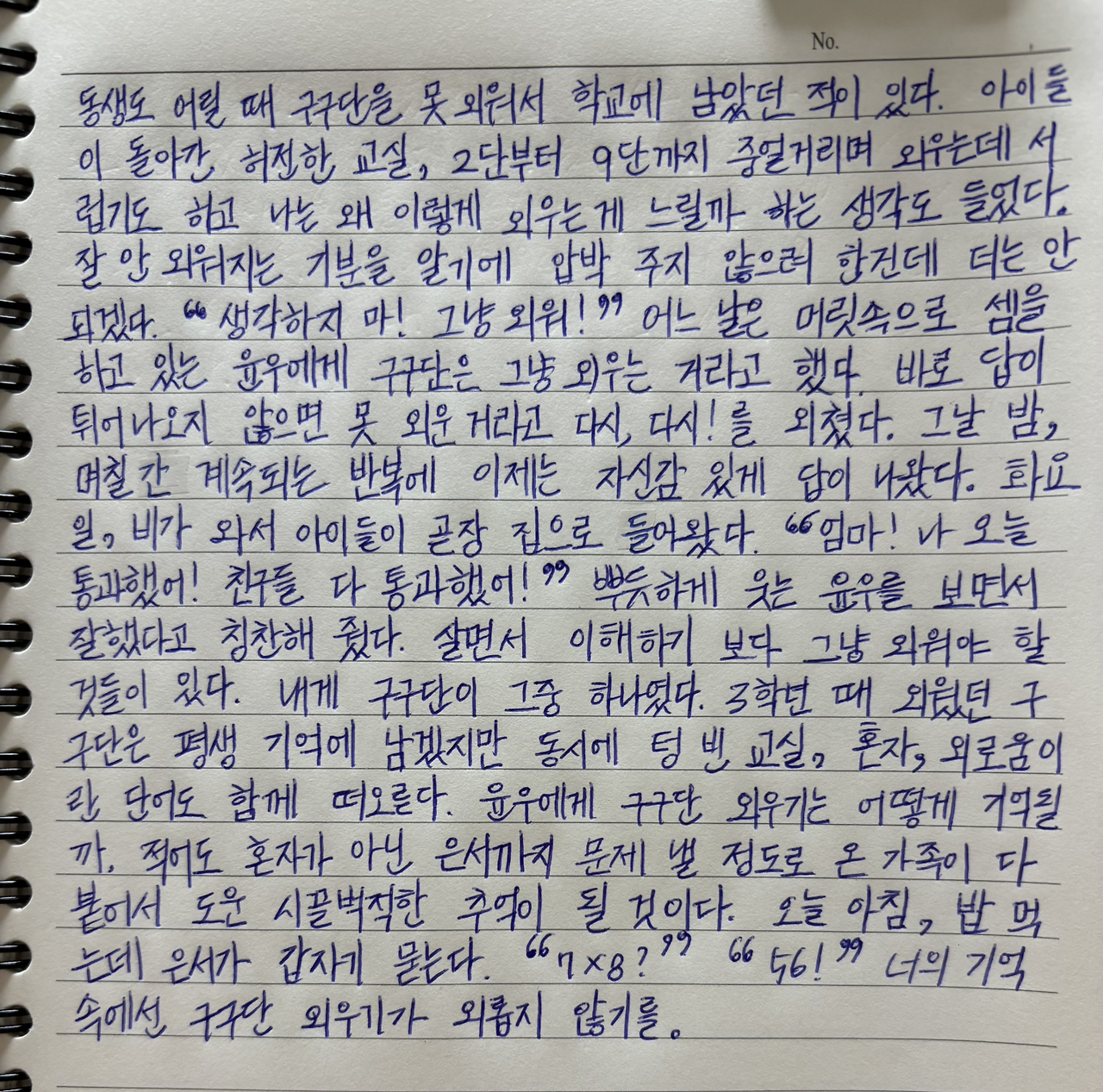 나도 동생도 어릴 때 구구단을 다 못 외워서 학교에 남았던 적이 있다.