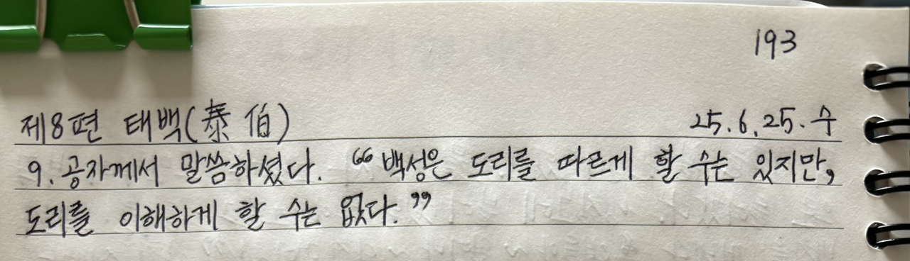 공자께서 말씀하셨다. “백성은 도리를 따르게 할 수는 있지만, 도리를 이해하게 할 수는 없다.”