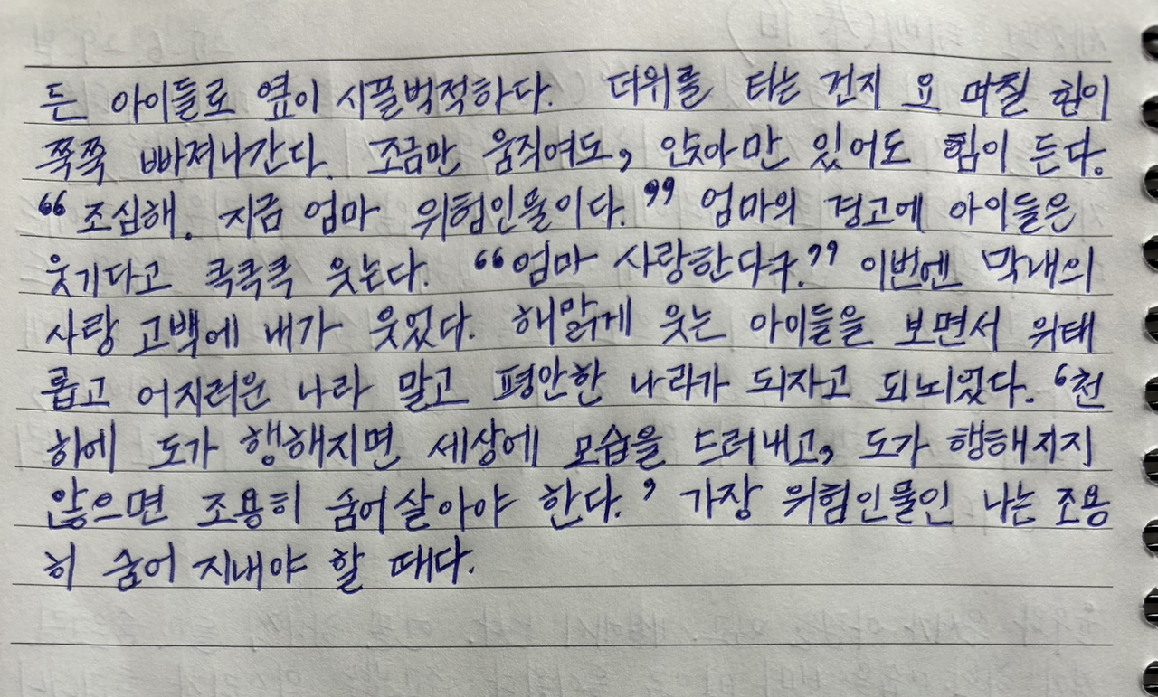 해맑게 웃는 아이들을 보면서 위태롭고 어지러운 나라 말고 평안한 나라가 되자고 되뇌었다.