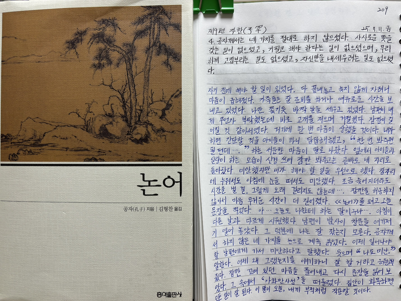 《논어》를 펴고 오늘 문장을 적었다.