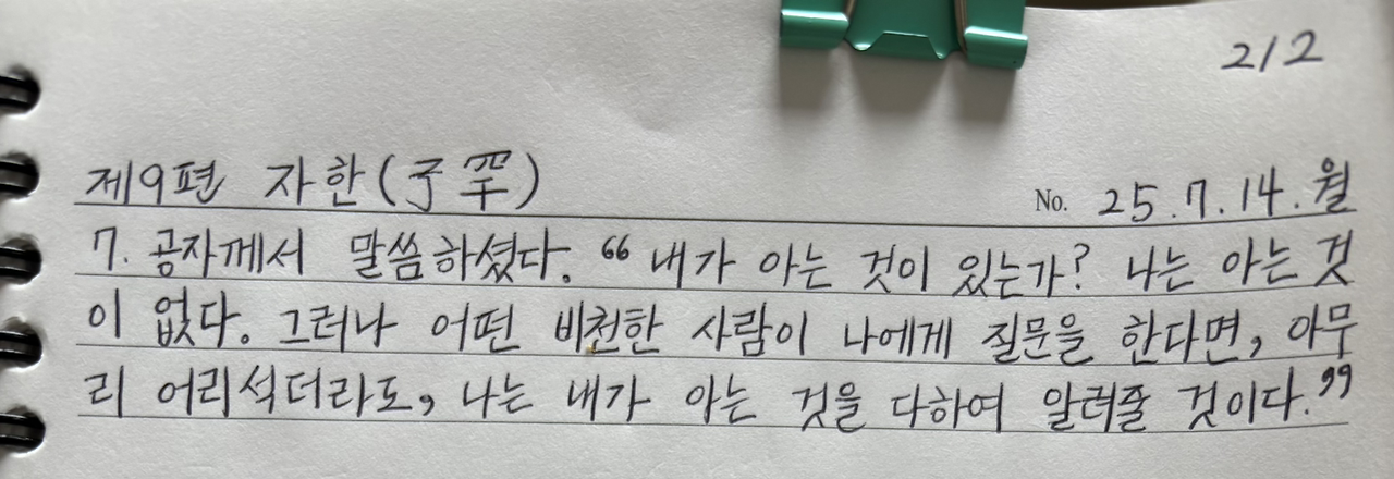 공자께서 말씀하셨다. "내가 아는 것이 있는가? 나는 아는 것이 없다. 그러나 어떤 비천한 사람이 나에게 질문을 한다면, 아무리 어리석더라도, 나는 내가 아는 것을 다하여 알려줄 것이다."