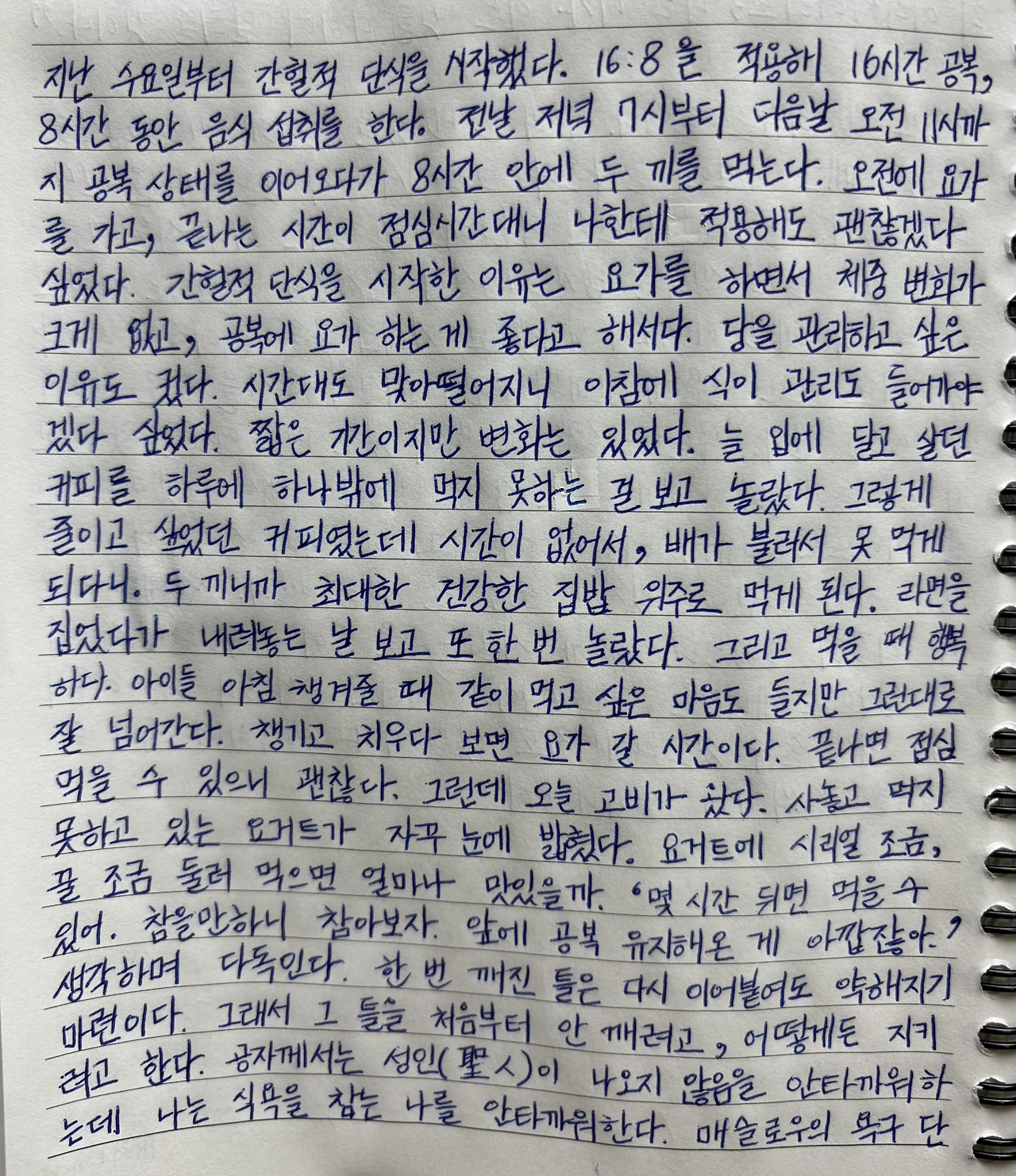 간헐적 단식을 시작한 이유는 요가를 하면서 체중 변화가 크게 없고, 공복에 요가하는 게 좋다고 해서다.