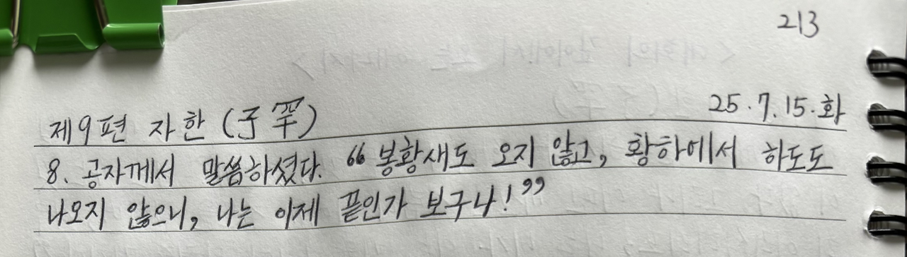 공자께서 말씀하셨다. “봉황새도 오지 않고, 황하에서 하도도 나오지 않으니, 나는 이제 끝인가 보구나!”