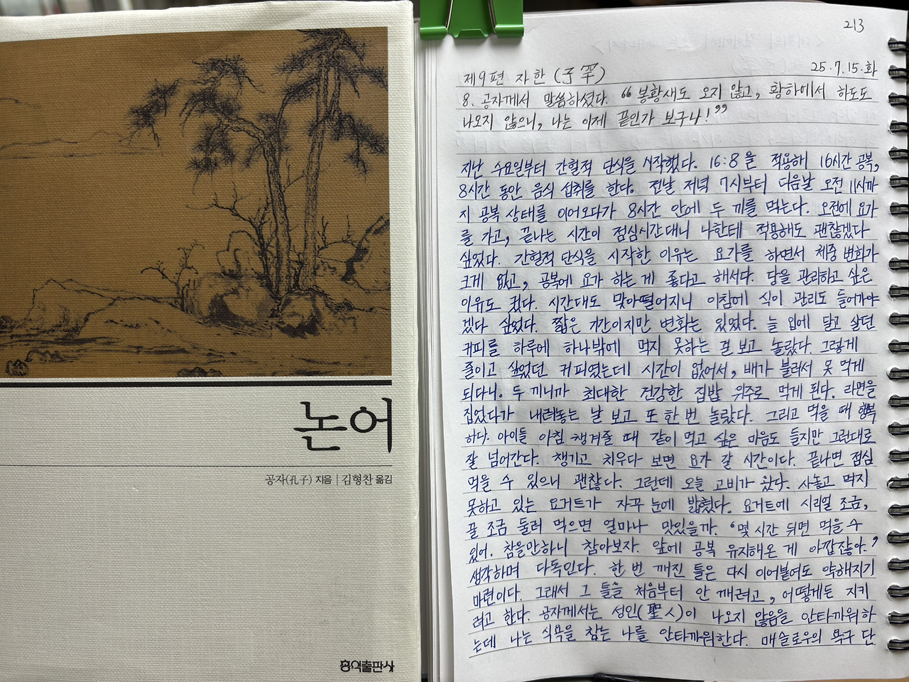 공자께서는 성인(聖人)이 나오지 않음을 안타까워하는데 나는 식욕을 참는 나를 안타까워한다.