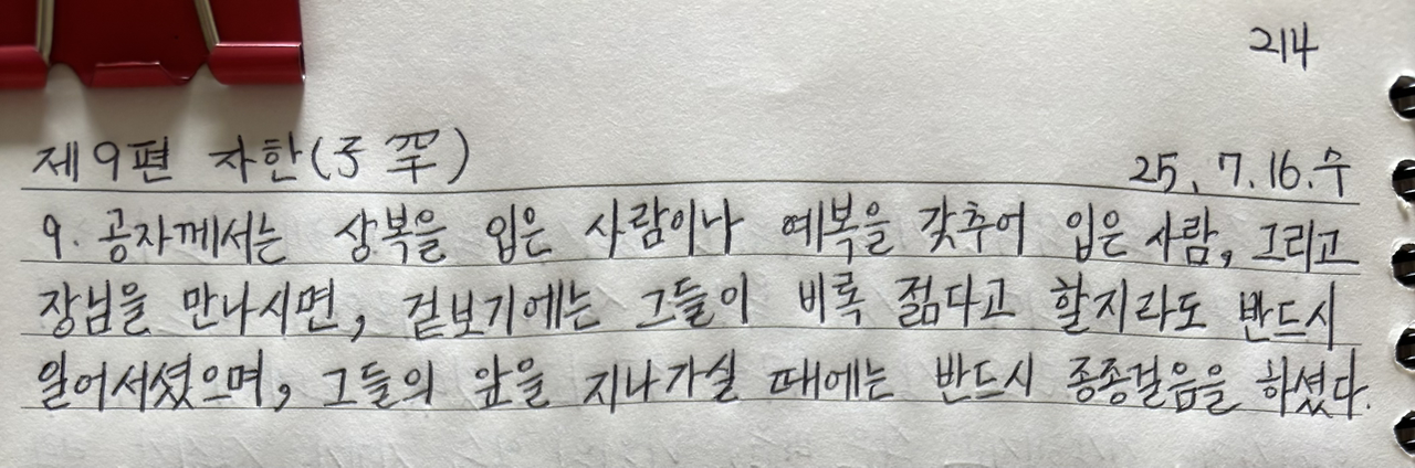공자께서는 상복을 입은 사람이나 예복을 갖추어 입은 사람, 그리고 장님을 만나시면, 겉보기에는 그들이 비록 젊다고 할지라도 반드시 일어서셨으며, 그들의 앞을 지나가실 때에는 반드시 종종걸음을 하셨다.