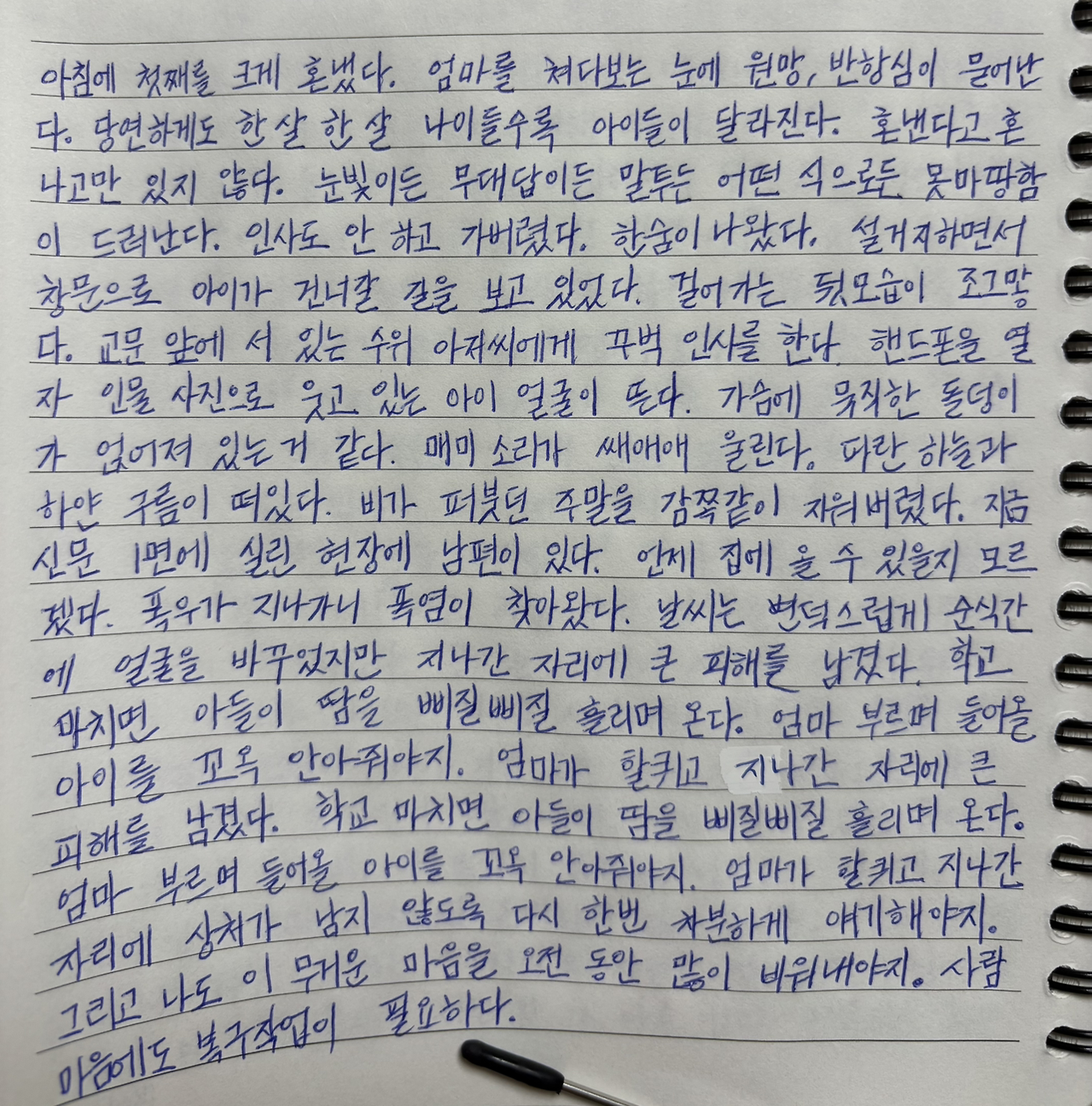 엄마가 할퀴고 지나간 자리에 상처가 남지 않도록 다시 한번 차분하게 얘기해야지.