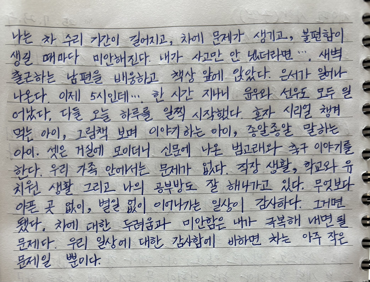 당분간은 운전대를 잡지 않을 것 같지만 언젠가는 다시 잡아야 한다는 무거운 마음이 있다.